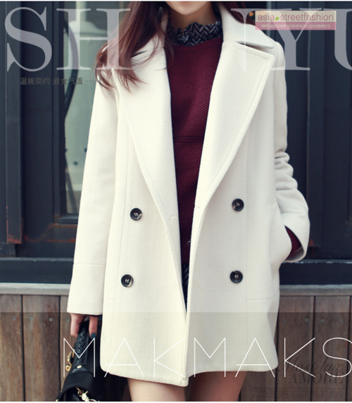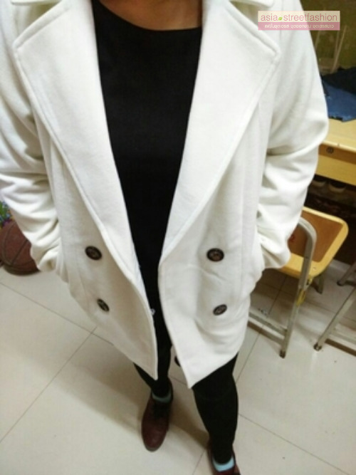 CLASSIC WHITE COAT เนื้อหนานุ่ม บุซับใน [ เสื้อโค้ท กันหนาว สีขาว ] พร้อมส่ง
