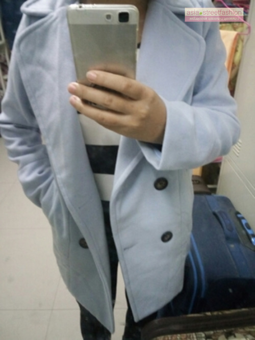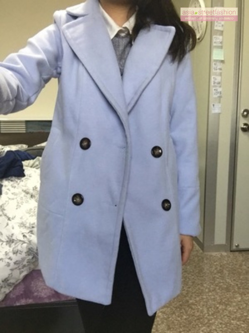 CLASSIC LIGHT BLUE COAT ผ้าวูลเนื้อหนานุ่ม บุซับใน [ เสื้อโค้ท กันหนาว สีฟ้าอ่อน ] พร้อมส่ง
